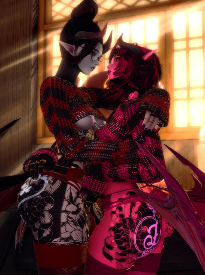 Occupation : Co-Owner & CourtesanGender Identity: FemaleSexual Preference: Bisexual - Female LeaningNSFW or SFW: BothRP Style:1st Person/ Say Style / Length can be flexible – Tailorable to partnerPricing: 1M /hrA proud daughter of the Steppes, that after the loss of her village found herself raised in New Girdania. At a young age under the tutelage of the Lancers Guild she discovered an affinity with the lance and her proudest accomplishment was becoming a Dragoon in service shortly for Ishgard in an officer exchange with the Twin Adders. After several years of service in Ishgard she returned to her adopted homeland and rose through the ranks of Twin Adders to the rank of Serpent Captain. After years of fighting her lance was hung-up and found contentment in the odd occasional jobs in the Adventurers Guild. After a chance encounter with a Goldsmith, she spent her days crafting jewelry completely taken by the beauty of each piece and a chance commission led her to the night life of Eorzea where she has discovered a love of the sites, sounds and people of the various venues and the vibrancy of the night as the sun sets.